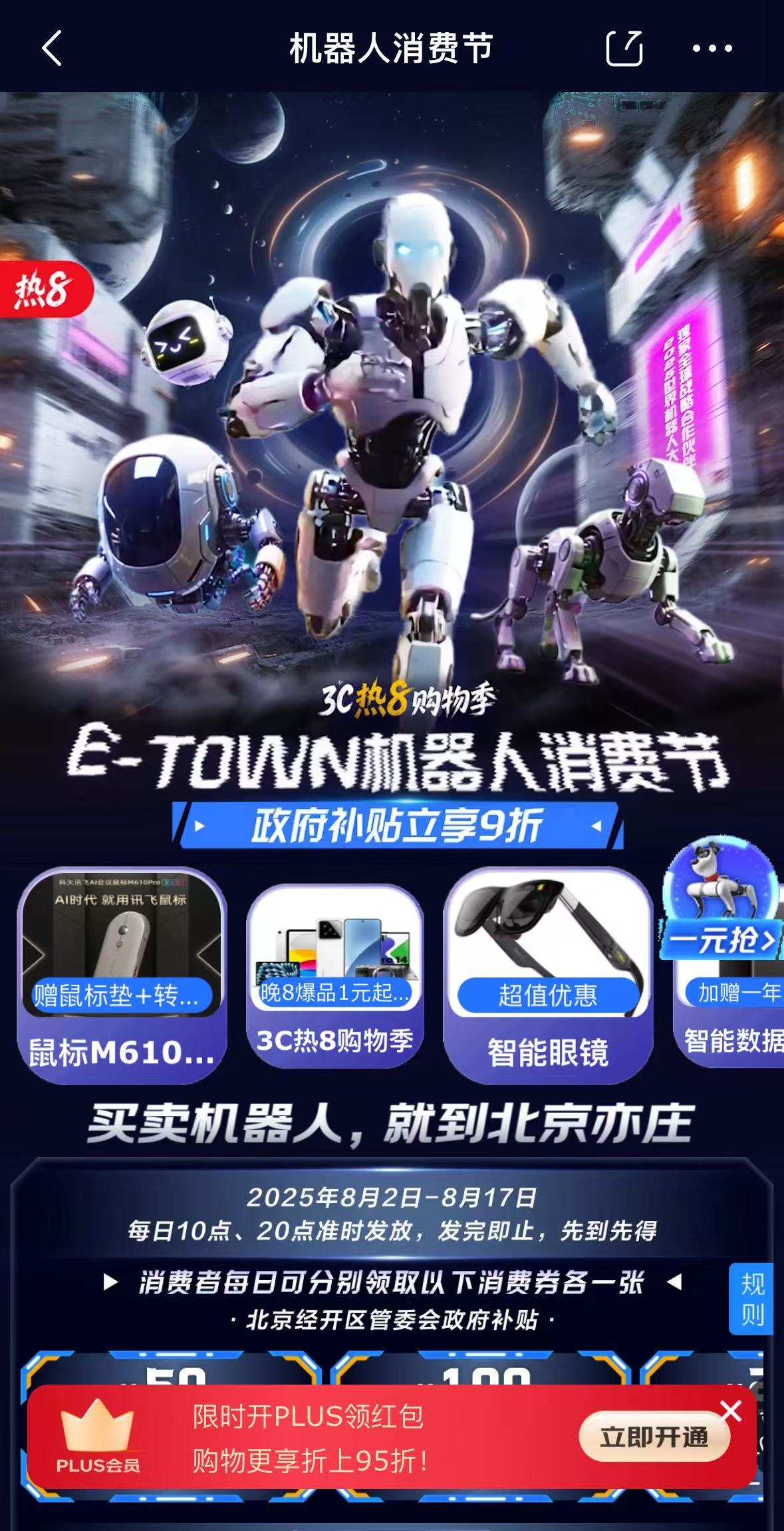 京东还在大会期间与北京经开区合作启动了“E-Town机器人消费节”,面向线上消费者提供四足机器人、双足机器人、外骨骼机器人、教育陪伴类机器人等4类63个品牌店铺680余种机器人产品。