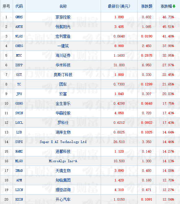 领涨中概股列表: