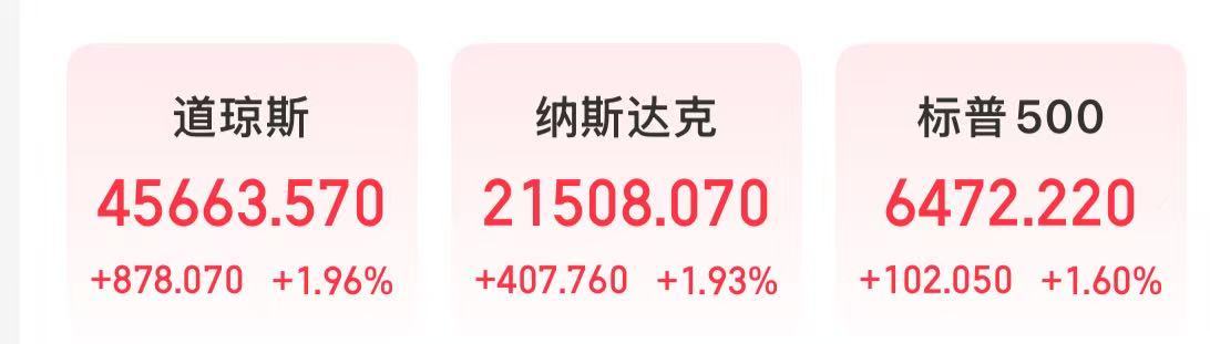 鲍威尔讲话后,美股三大指数集体大涨,道指涨超870点,涨幅1.96%,纳指上涨1.93%,标普500指数上涨1.60%。