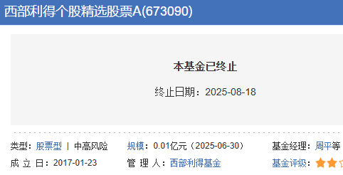 西部利得个股精选股票清盘 C份额成立4年亏36%