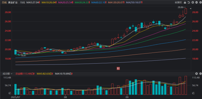 注:紫金矿业今日再创历史新高(截至9月29日收盘)