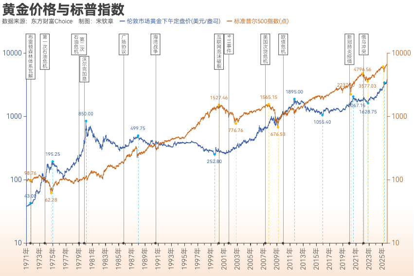 一位华尔街投行贵金属部人士认为,这主要得益于黄金在某些全球性经济金融风险事件发生期间的表现优于标普500指数,奠定了黄金涨幅长期跑赢标普500指数的基础。