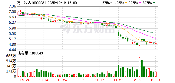截至12月19日收盘,万科A报4.9元/股,股价上涨了0.62%。
