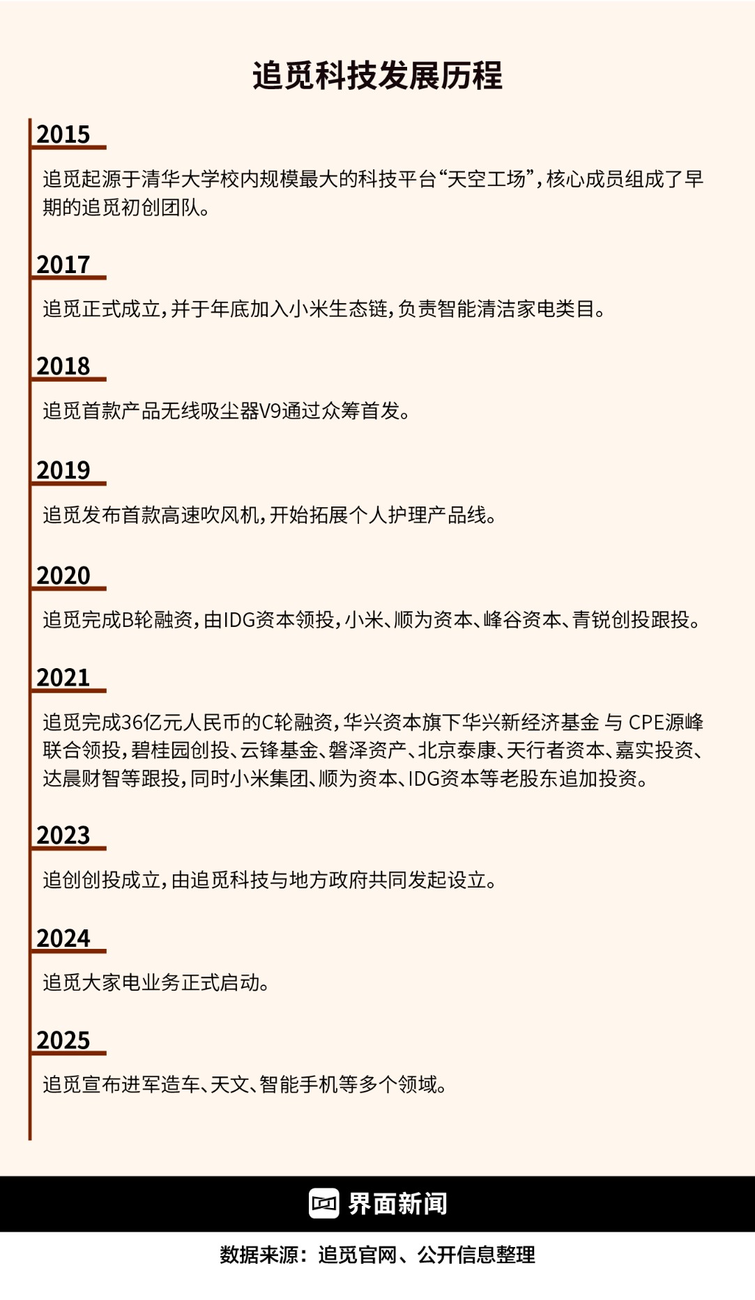 追觅最早是小米生态链成员之一,早期融资也多来自小米系资本。直到2021年10月,追觅完成36亿元C轮融资,创下当时智能清洁行业融资额新高,还引入了华兴新经济基金、云锋基金等机构跟投。这笔资金,也让追觅成功“去小米化”。